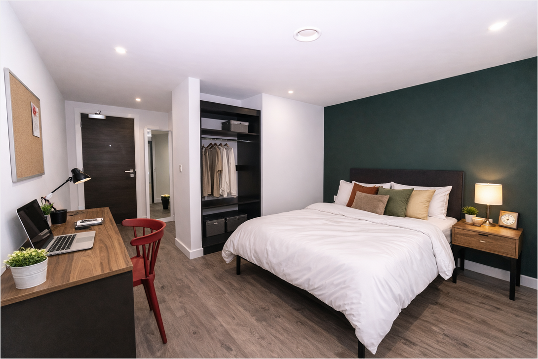 The overall design balances practicality with a contemporary look, using durable materials and clean, modern finishes to create spaces that feel both professional and homely—helping the accommodation stand out in a competitive student market.