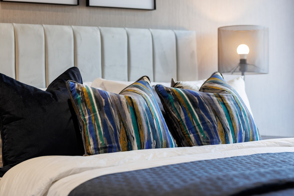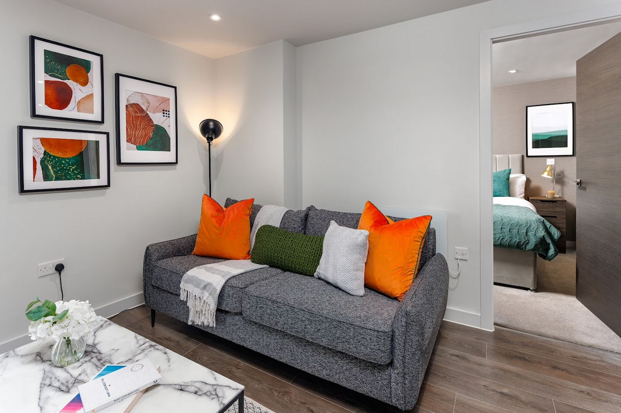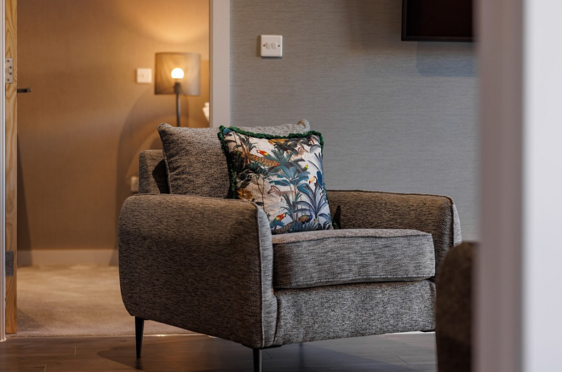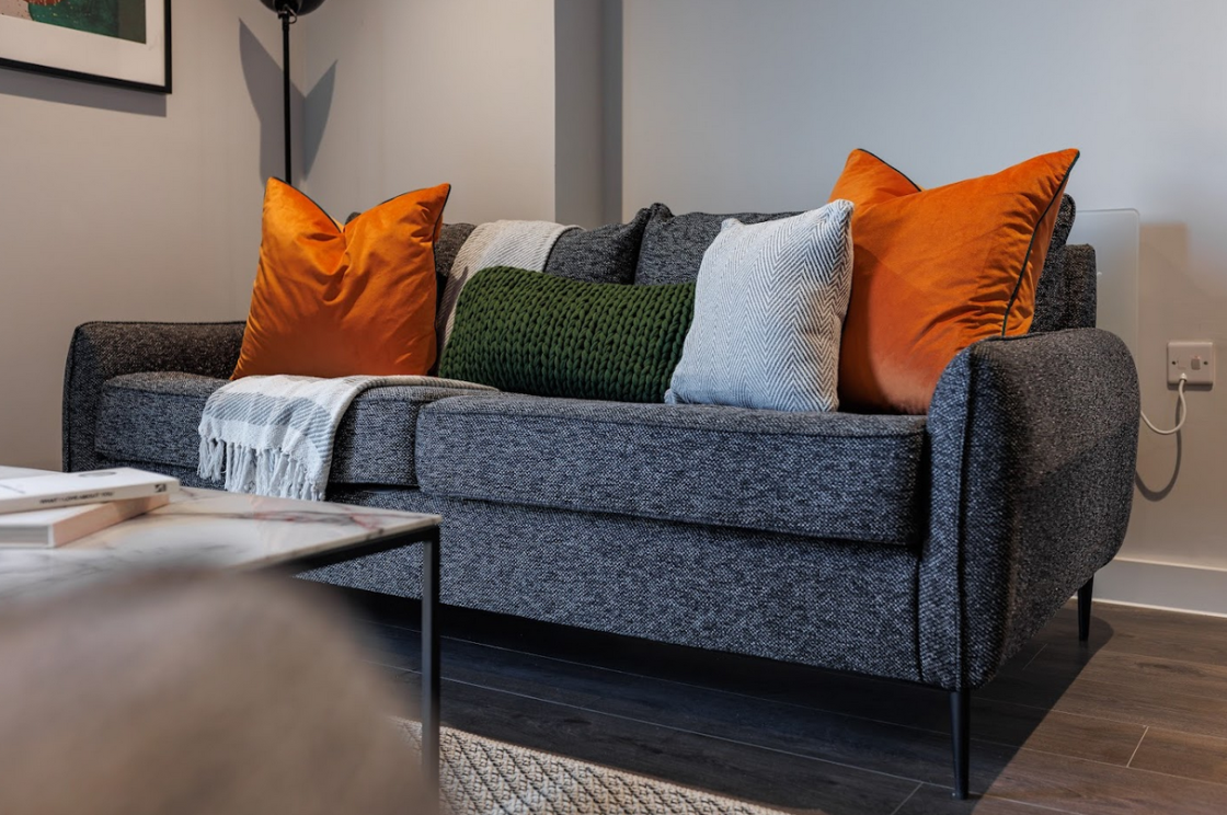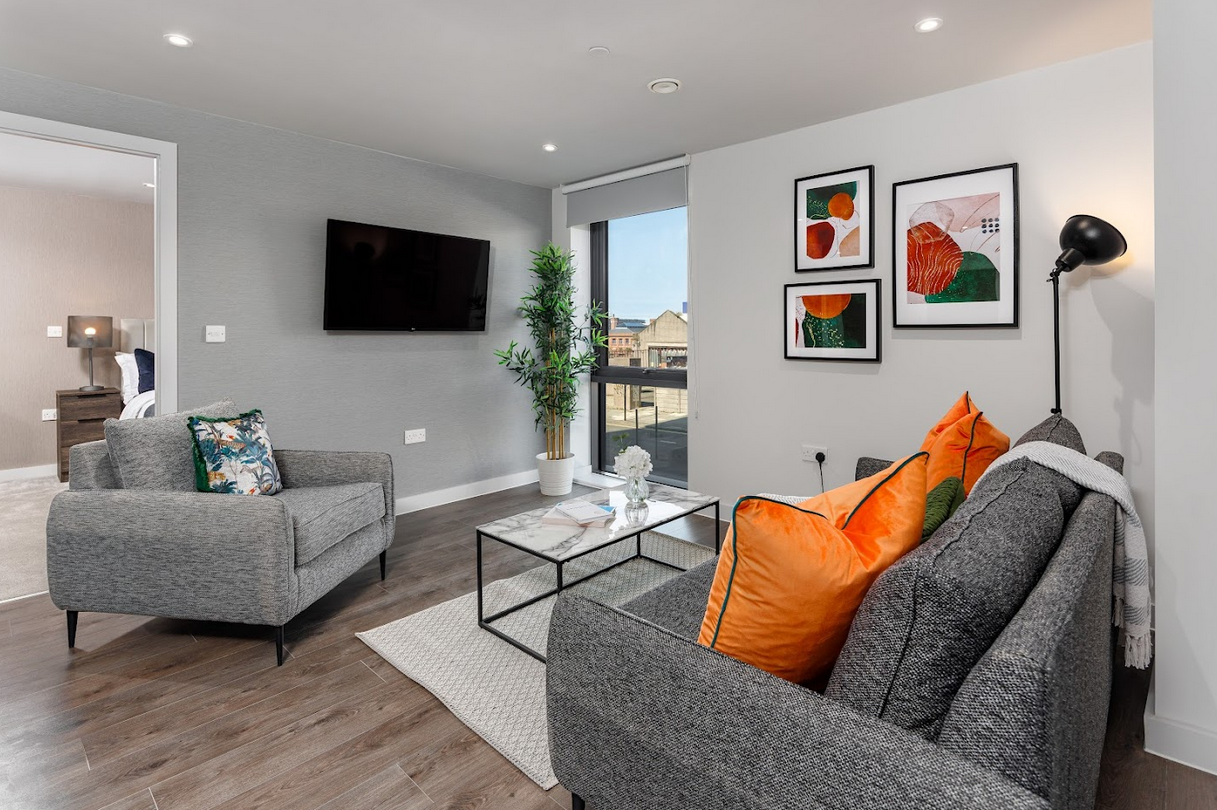 Each apartment was furnished with a carefully considered selection of high-quality, durable pieces designed to maximise both comfort and functionality. Living areas feature clean-lined sofas and armchairs paired with practical coffee tables, offering a balanced layout that works for both relaxation and everyday use. The furniture choices maintain a neutral, versatile aesthetic, allowing each space to feel open, bright, and adaptable.