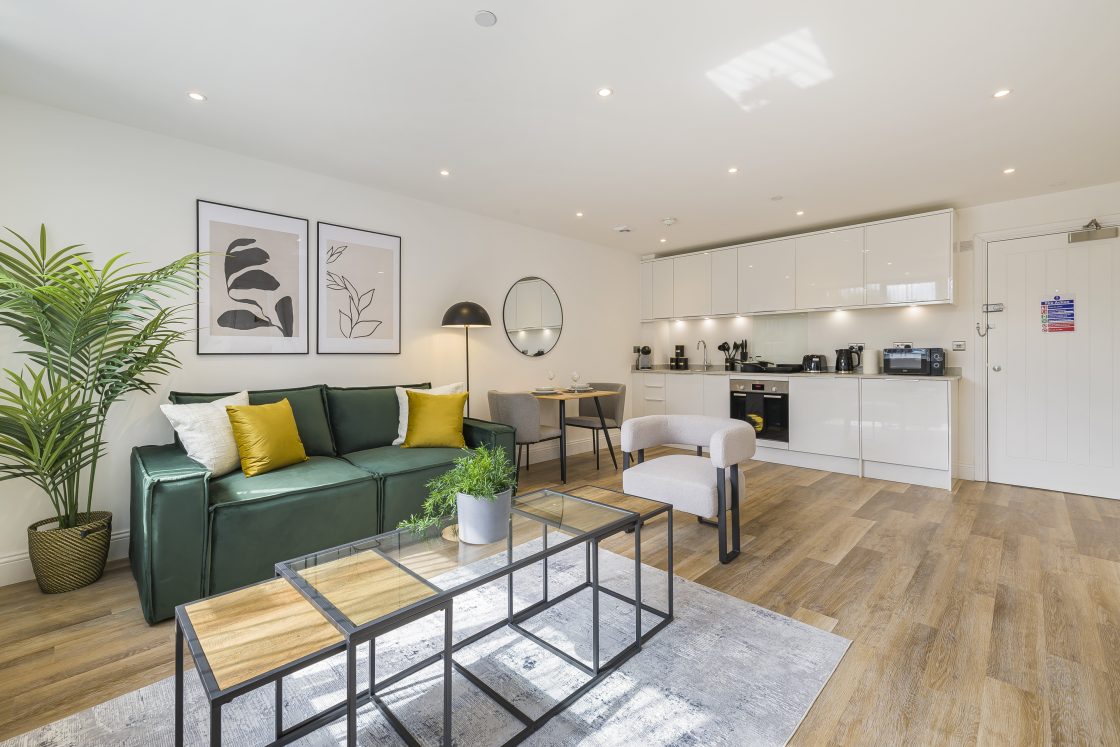 For this serviced accommodation property at Trinity Point, Kent, we delivered and installed a complete contemporary furniture pack designed to maximise comfort, functionality, and visual appeal for short-stay guests.