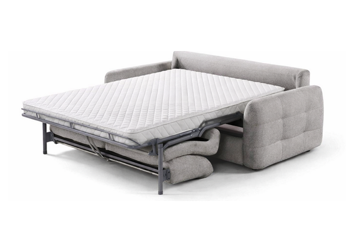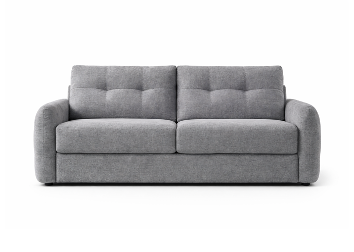 The Athena is a contemporary light grey fabric sofa bed designed to combine everyday comfort with practical functionality. Featuring soft, rounded arms, deep supportive seat cushions and a clean, modern silhouette, it makes a stylish addition to any living space. Effortlessly transforming into a sturdy pull-out bed, the Athena reveals a durable metal frame and a full-size mattress that provides reliable support for overnight guests. Perfect for both lounging and sleeping, this versatile piece offers the ideal balance of comfort, convenience and modern design.